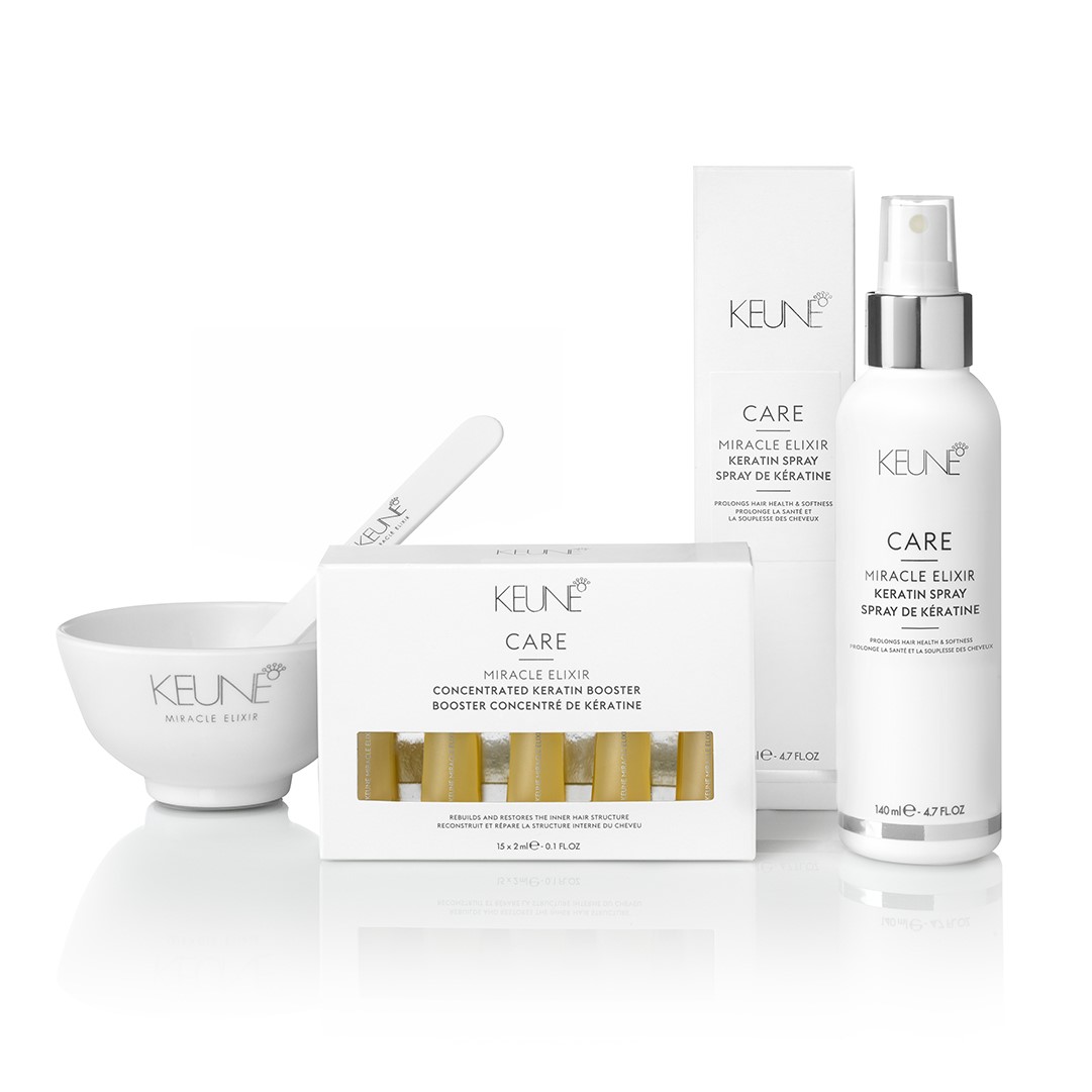 Care Miracle Elixir features two brand-new products: Miracle Elixir Booster and Miracle Elixir Keratin Spray for home use.